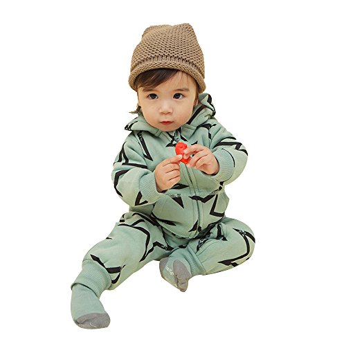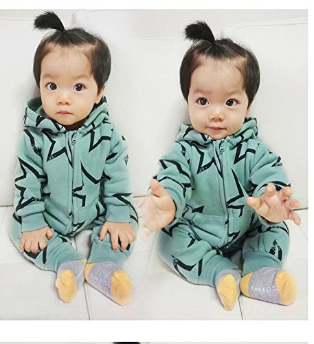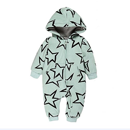 スター ロンパース カバーオール 春ベビー服 新生児 水色グリーン 80CM