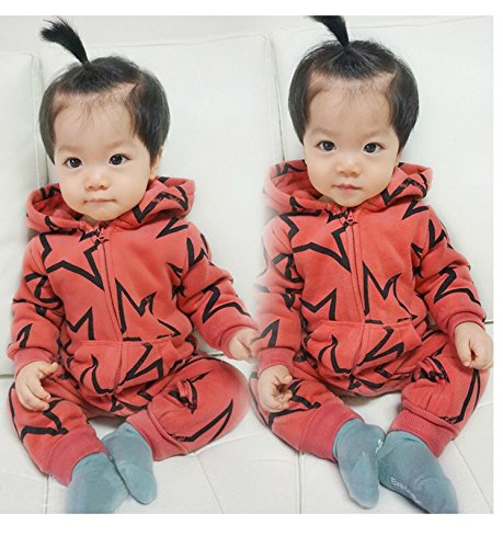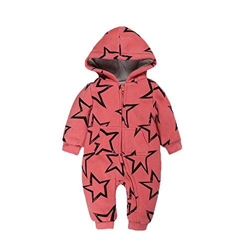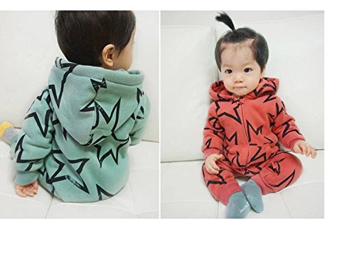 星柄ロンパース カバーオール 春ベビー服 新生児 レッド グリーン (90, レッド)