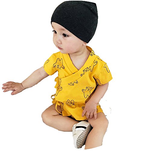 クマ柄 浴衣 パジャマ 甚平 半袖 新生児 ベビー用 上下セットイエロー73cm