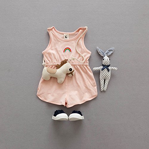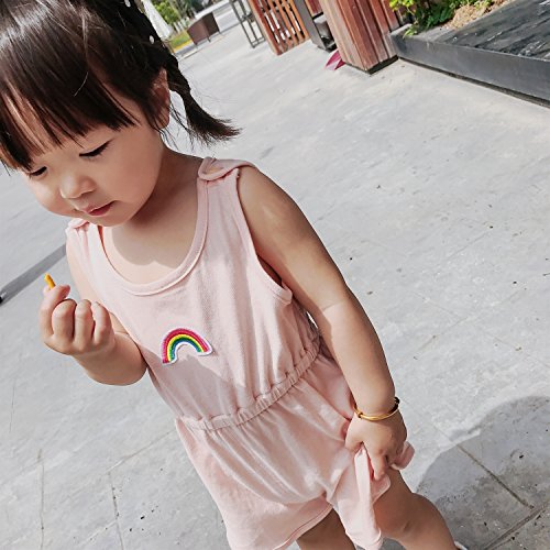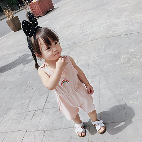 虹柄 ロンパース サロペット ショートオーバーオール ノースリーブ 女の子 ベビー ピンク 80cm