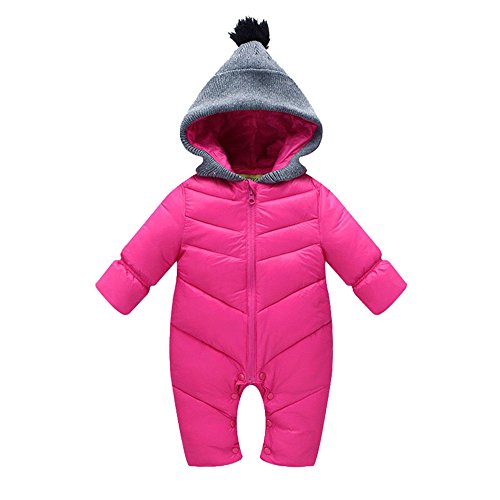 ベビー用ダウンロンパース 新生児 幼児コットンコート バラ色 0-3ヶ月