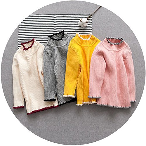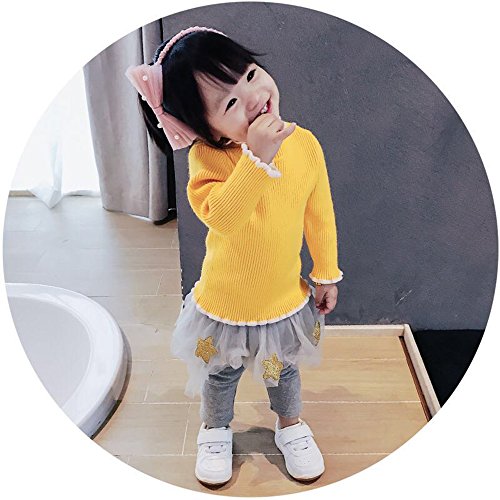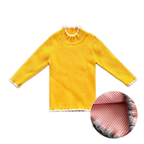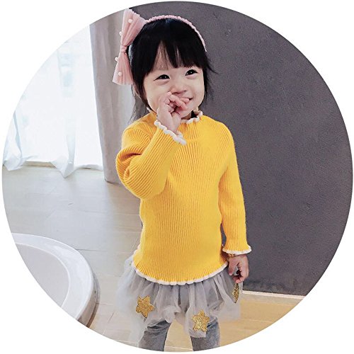 プリーツ襟 無地セーター Tシャツ 長袖 ニットウェア 秋冬春 ベビー 子供服 女の子 イエロー 80cm