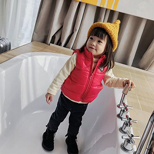 TimeCrashノースリーブベスト ダウンベスト ライトウォーム ベビー服 中綿 袖なし 子ども 保温 防寒 無地 女の子 ガールズ ジャケット 男の子 軽量 秋冬 通園 通学 レッド90cm