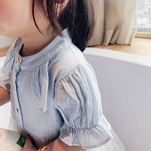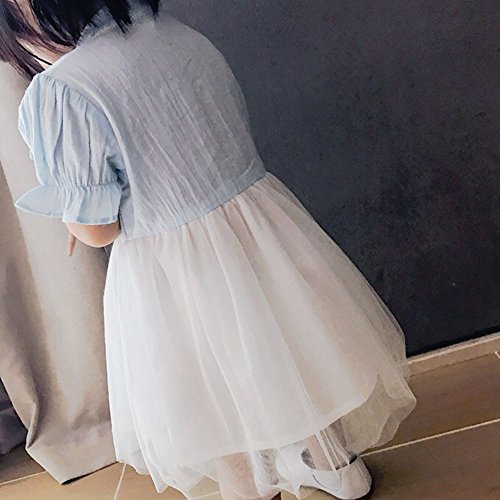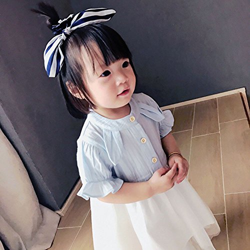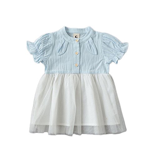 ベビー用 兎の耳 チュールワンピース チュールスカート チュニック チュチュスカート プリーツスカート 半袖Tシャツ 夏 女の子1~3歳 ブルー80cm
