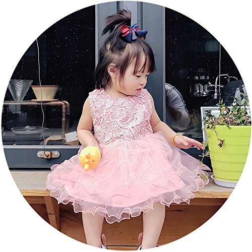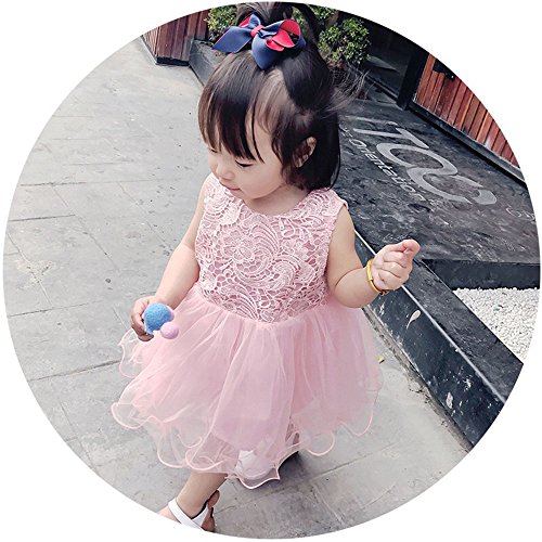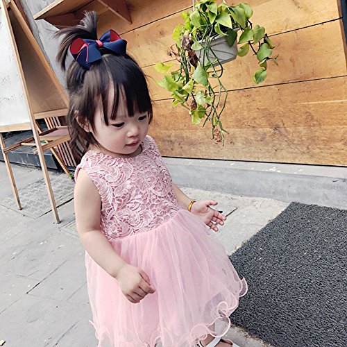洋服 レース チュールワンピース ノースリーブ チュールスカート チュニック チュチュスカート ガールズ 夏 女の子1~3歳 ピンク80cm