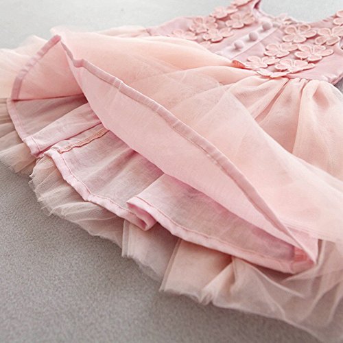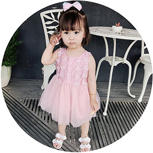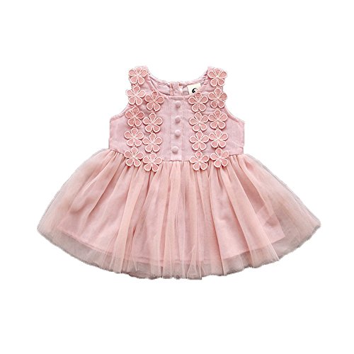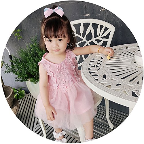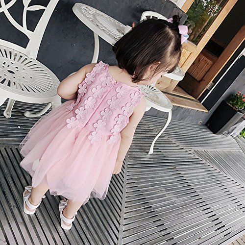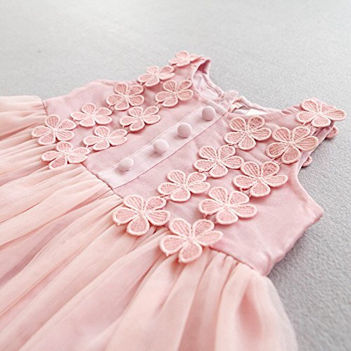 花刺繍飾り レース チュールワンピース ノースリーブ 洋服 チュールスカート チュニック チュチュスカート ガールズ 夏 女の子1~3歳 ピンク95cm