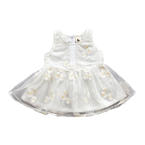 マーガレット レース チュールワンピース ノースリーブ 洋服 チュールスカート チュニック チュチュスカート ガールズ 夏 女の子1~3歳 ホワイト90cm