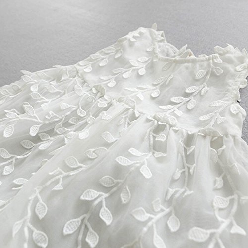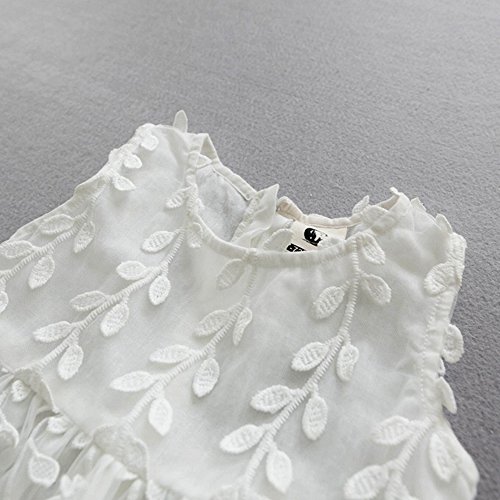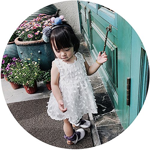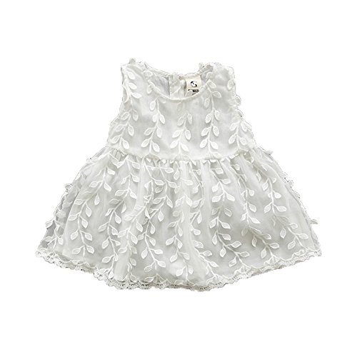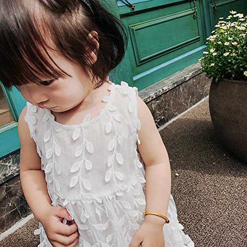 柳の葉 レース チュールワンピース ノースリーブ 洋服 チュールスカート チュニック チュチュスカート ガールズ 夏 女の子1~3歳 ホワイト80cm