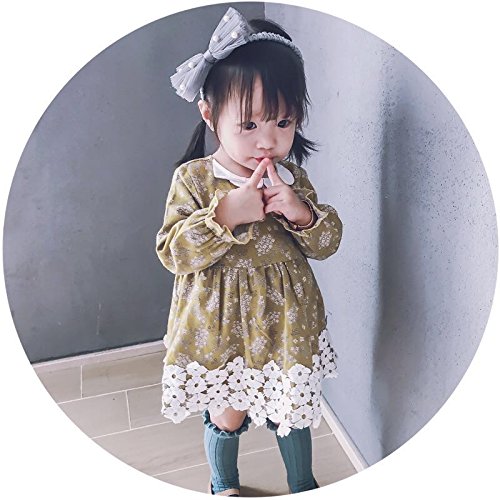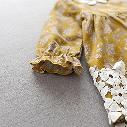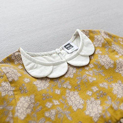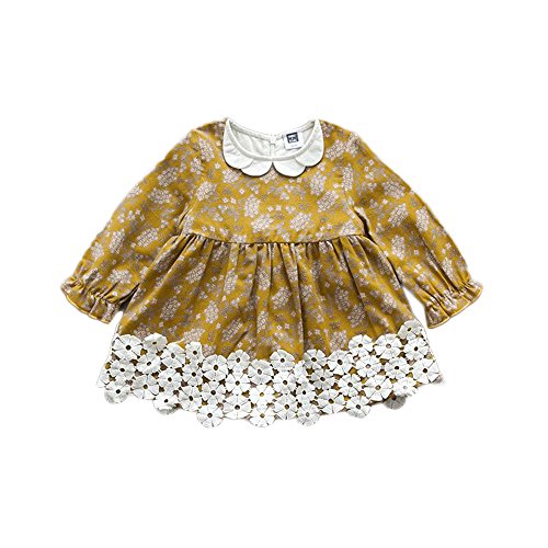 ベビー服 女の子ワンピース 子供服 Pojour 可愛い花セーター つりスカート長袖ドレス オシャレ 秋 綿 通園 発表会 旅行 記念日 プレゼント 黄色