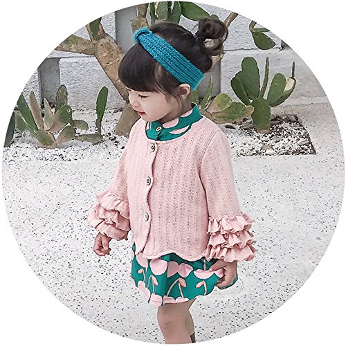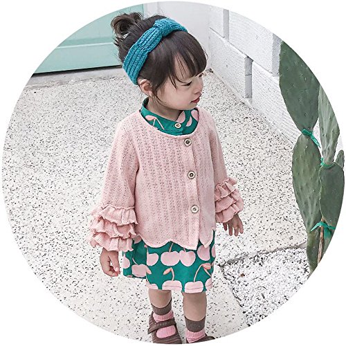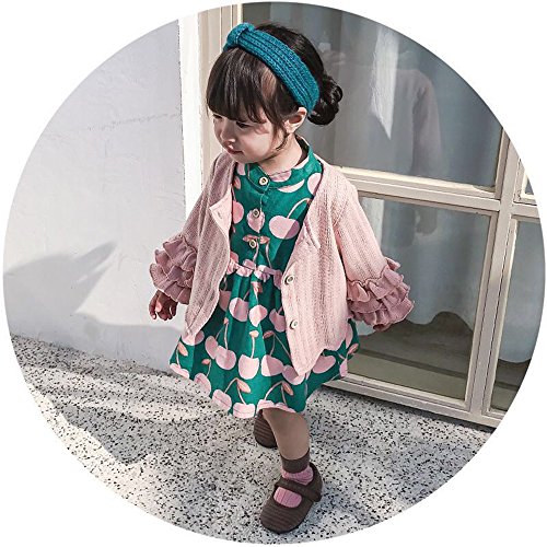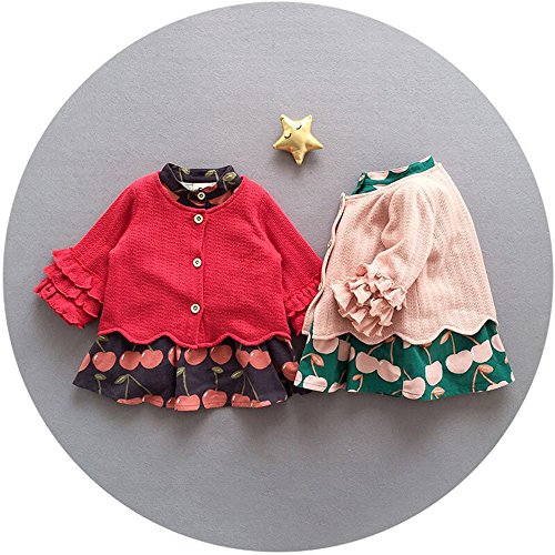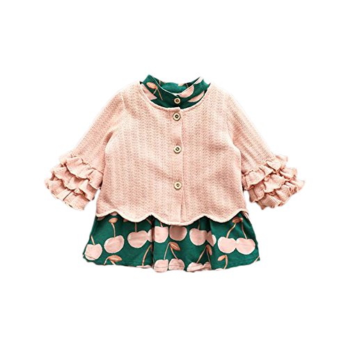 桜桃柄 ワンピース&カーディガン 2点セット クルーネック ニット チュニック 長袖 洋服 ブラウス ガールズ 春 女の子1~4歳 ピンク90cm