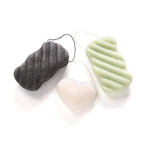 - 商品構成:こんにゃくスポンジ 黒、白、緑 それぞれ1個ずつ。計 3個。黒(竹炭、保湿コンディショニング)、白(純粋こんにゃく、深層洗颜)、緑(アロエ、保湿)。