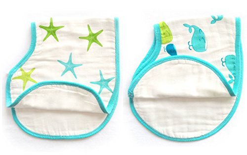 Generously sized - 9.5 x 24 (24 x 61 cm) for maximum coverage to protect against sniffles, drips and drools.;4 absorbent, thick, layers natural, breathable organic cotton muslin fabric.;Contoured shape -Allows for natural wrap around neck and shoulders.;Machine washable, that will get softer with every wash.;Quality binding is made to last through everyday use and washes.