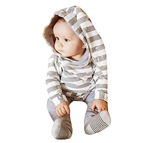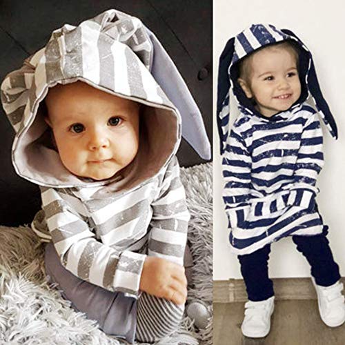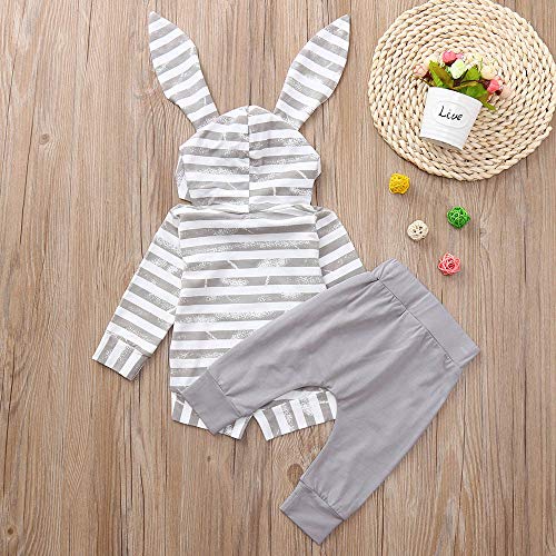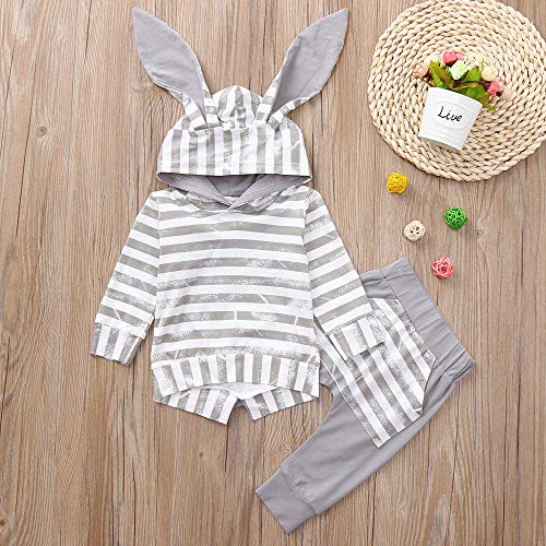 ベビー服 子供服 Timsa キッズ服 女の子 男の子 コスチューム 赤ちゃん服 かわいい ウサギの耳 耳付き うさぎ模様 フード パジャマ 新生児 歩行服 秋冬 ロンパース カバーオール 満月 出産お祝い 記念日 プレゼント 写真 撮影 上着+パンツ 2点セット (80, グレー)