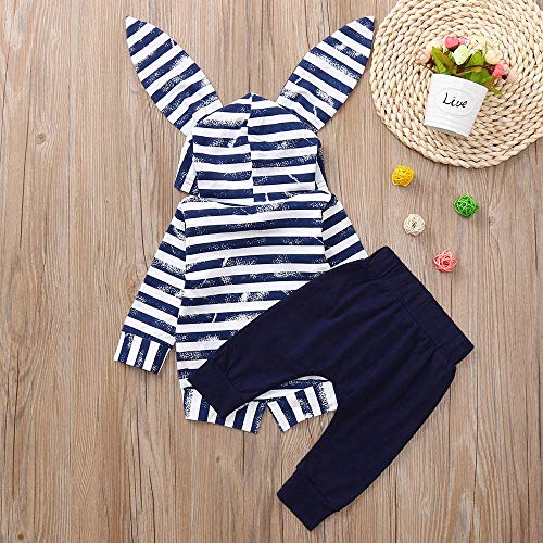 ベビー服 子供服 Timsa キッズ服 女の子 男の子 コスチューム 赤ちゃん服 かわいい ウサギの耳 耳付き うさぎ模様 フード パジャマ 新生児 歩行服 秋冬 ロンパース カバーオール 満月 出産お祝い 記念日 プレゼント 写真 撮影 上着+パンツ 2点セット (80, ネイビー)