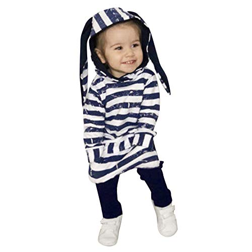 ベビー服 子供服 Timsa キッズ服 女の子 男の子 コスチューム 赤ちゃん服 かわいい ウサギの耳 耳付き うさぎ模様 フード パジャマ 新生児 歩行服 秋冬 ロンパース カバーオール 満月 出産お祝い 記念日 プレゼント 写真 撮影 上着+パンツ 2点セット (90, ネイビー)