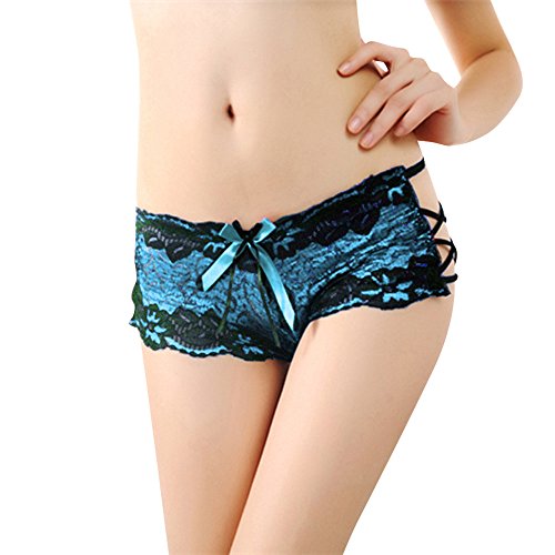 Tバック Tショーツ Timsa セクシー レディース パンティ 総レース 無地 花柄 三角 四角 シースルー 透け 見せパン Tバック 下着 ストラップ 過激 ランジェリー ビキニ パンツ 誘惑 エッチ エロ パンティー Gストリング 可愛い 女性 プレゼント 流行 (四角 パンティ ブルー)