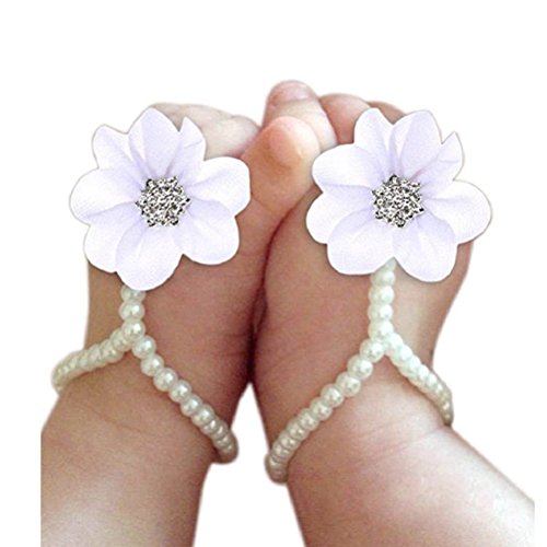 Tinksky赤ちゃん女の子裸足サンダル乳児幼児花靴(ホワイト)