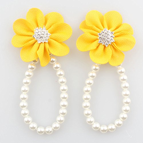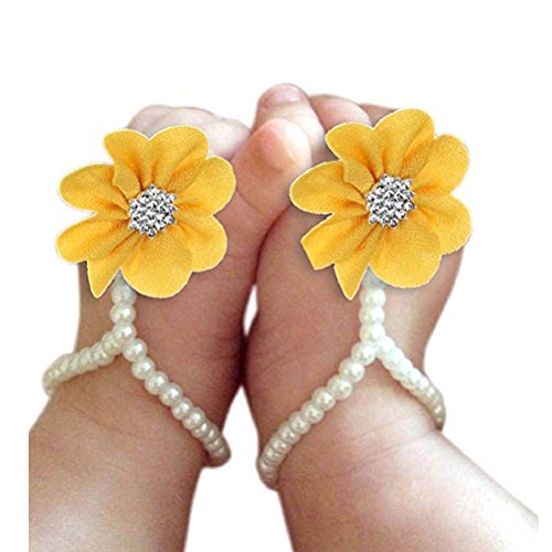 Tinksky赤ちゃん女の子裸足サンダル乳児幼児花靴(イエロー)