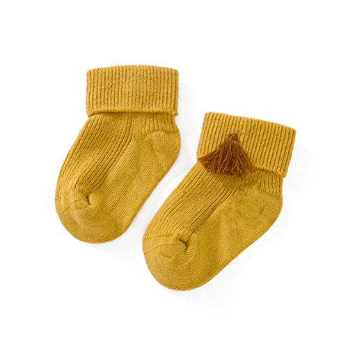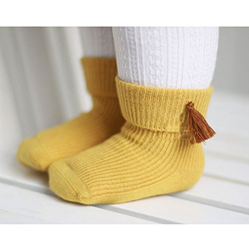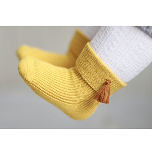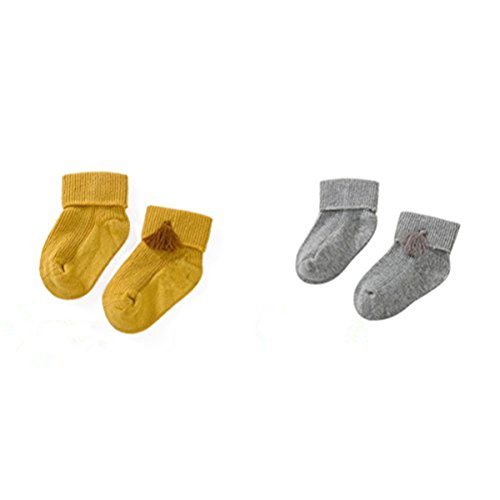 2ペア*カットキッズガールズ足首ソックスに袖口、クルーノンスリップ綿靴下0 – 2歳のガールズ(イエローandamp ;グレー)