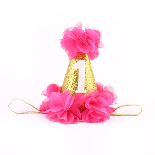 1 ×ベビーフラワーヘアアクセサリークラウン1st Birthdayパーティーハットプリンセスのカチューシャローズレッド