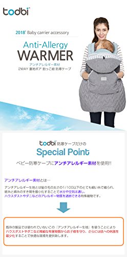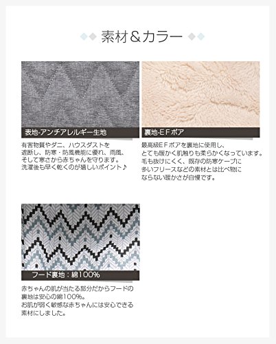 ダニNO!ハウスダストNO! アンチアレルギー素材 2WAY 裏地ボア 防寒 ベビーケープ(全ての抱っこひも、ヒップシート、ベビーカー装着可能)【todbi_warmer】 (グレー)