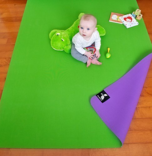 Natural rubber, a safe and eco-friendly choice. Non-toxic and non-hazardous for use by children: free from phthalates and chemical flame retardants that can be found in synthetic materials.;Safety tested and certified to meet all North-American toy safety standards.;Biodegradable: will not leave a permanent footprint in the landfill after its useful life.;Soft rubber surface makes play time comfortable and provides a non-slip cushioned landing for tots learning to sit, stand, crawl or walk on their own.;Rolls up and away for easy storage; great for a condo or apartment, the cottage, or multi-purpose spaces. Large play surface: 130 x 168 cm (approx. 4.25 x 5.5 ft), and 5 mm thick (3/16 in).