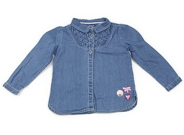 - 実際のサイズ表記は92です。デニム風の柔らかいシャツ。素材特有の色落ちはありますが凝ったデザインでまだまだ活躍してくれそうです。はおりにも重宝します。