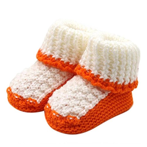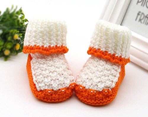 Tonsee 可愛い ベビー シューズ 赤ちゃん 暖かい ニットシューズ ソフト ファーストシューズ (オレンジ)