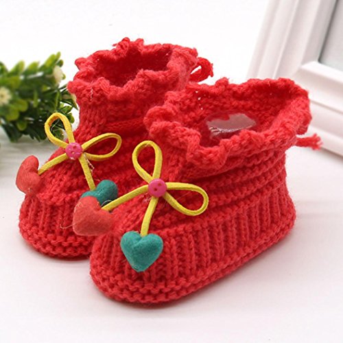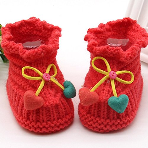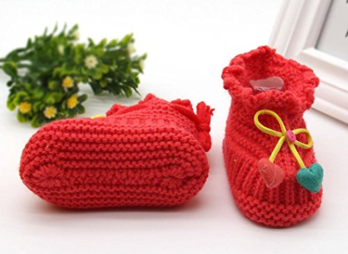 Tonsee 超可愛い ベビー シューズ 赤ちゃん ニットシューズ 暖かい ファーストシューズ (スイカレッド)