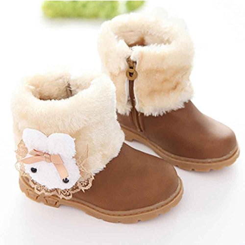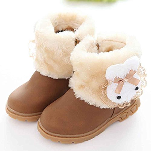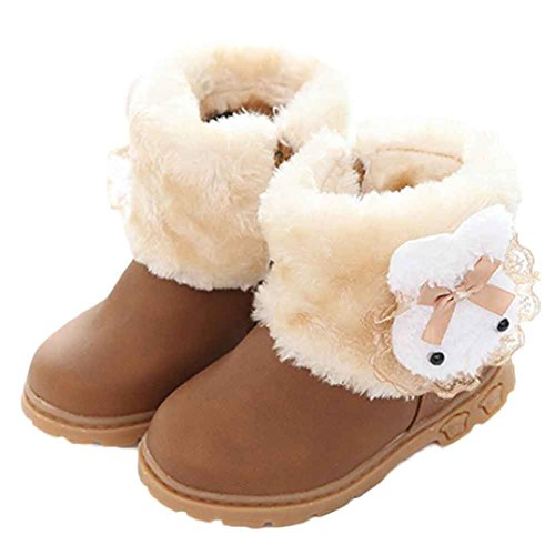 Tonsee 女の子 可愛い ブーツ 暖かい シューズ 防寒対策 快適 スノーブーツ (13CM, カーキ)