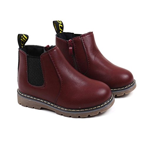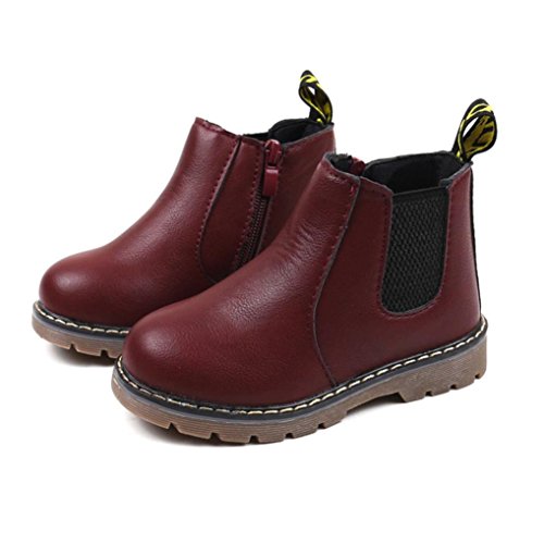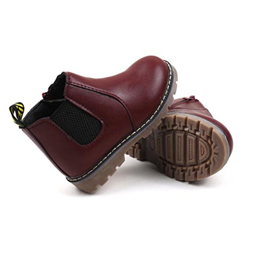Tonsee 子供 ブーツ ベビーブーツ 男の子 女の子 防寒対策 赤ちゃん 暖かい シューズ PUレザー キッズブーツ 滑り止め 13CM-18.5CM (14.5CM, ワイン)