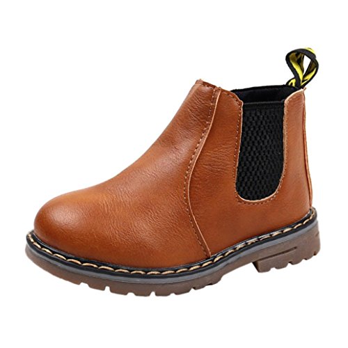 Tonsee 子供 ブーツ 男の子 女の子 マーティンブーツ 防寒対策 暖かい PUレザー キッズブーツ アウトドア 滑り止め 19CM-22CM (20.2CM, ブラウン)