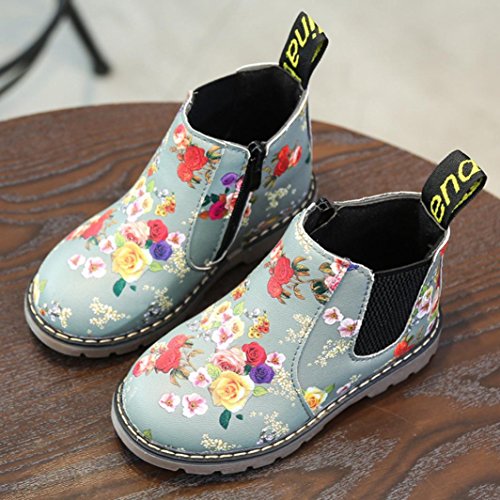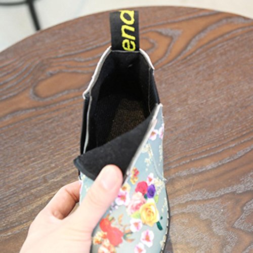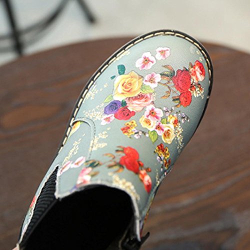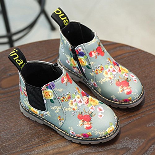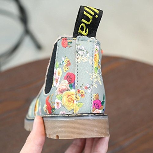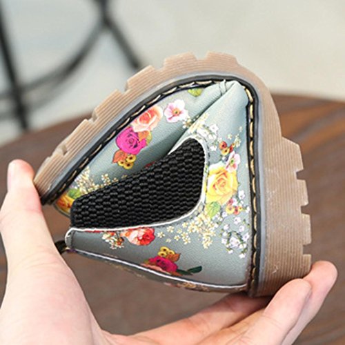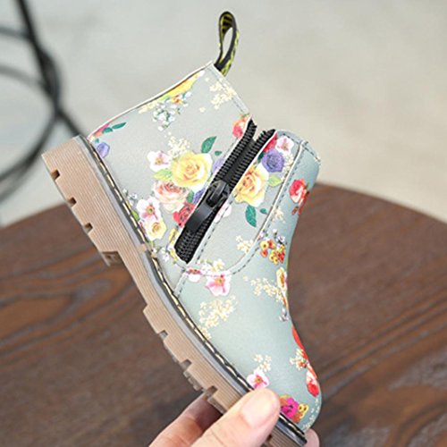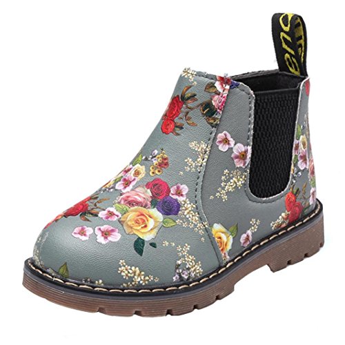 Tonsee キッズ ブーツ 子供靴 ベビーシューズ 男の子 女の子 可愛い 花柄 マーティンブーツ ショートブーツ PUレザー 滑り止め 通園 プレゼント 12.5CM-14.5CM (12.5CM, グレー)