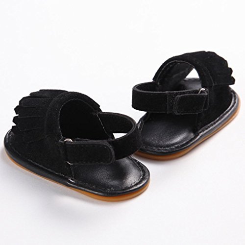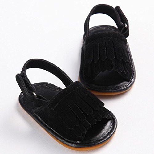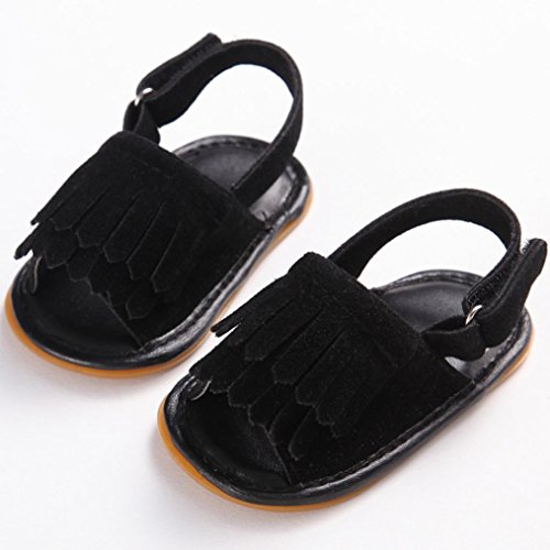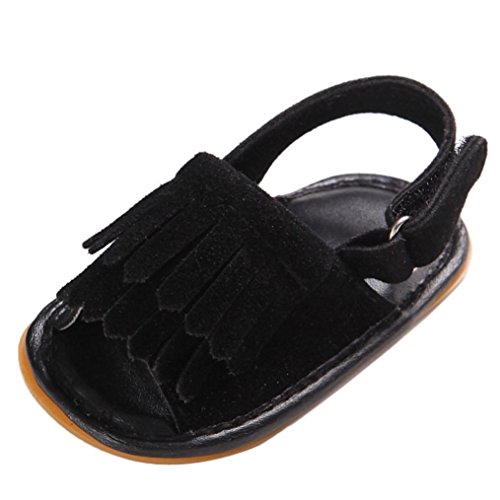 Tonsee ベビー サンダル 子供 シューズ 可愛い タッセル付き 赤ちゃん ファーストシューズ アンチスリップ (11CM, ブラック)