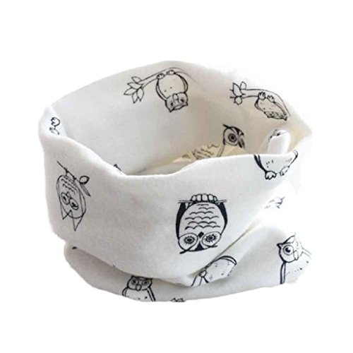 Tonsee キッズ 暖かい ネックウォーマー 防寒 可愛い フクロウ パターン スカーフ 赤ちゃん用 マフラー (ホワイト)