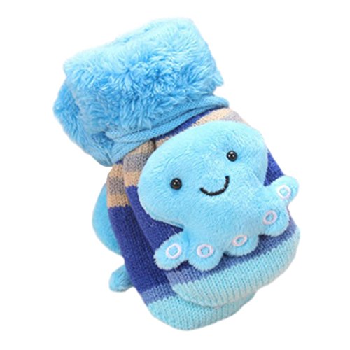 Tonsee 女の子 男の子 可愛い 指なし 手袋 子供用 暖かい 手袋 大人気 グローブ (ブルー)