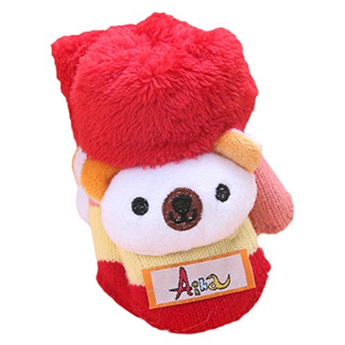 Tonsee 子供用 指なし 手袋 可愛い カートゥーン グローブ 暖かい 手袋 (レッド)