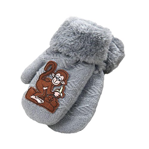 Tonsee 男の子 指なし 手袋 ボーイズ 柔らかい 手袋 可愛い カートゥーン モンキー グローブ (グレー)