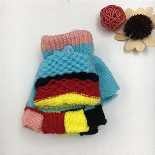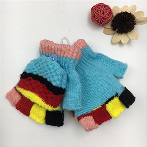 Tonsee キッズ 手袋 子供用 可愛い グローブ 半指 女の子 男の子 ミトン 保温 防寒 冬用 通学 お出かけ用 (スカイブルー)