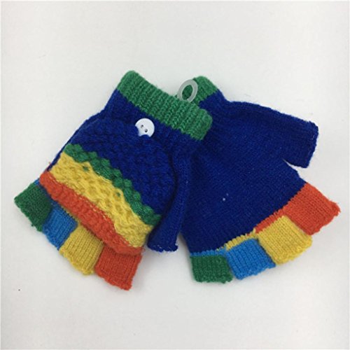 Tonsee キッズ 手袋 子供用 可愛い グローブ 半指 女の子 男の子 ミトン 保温 防寒 冬用 通学 お出かけ用 (ダークブルー)