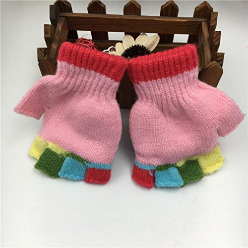 Tonsee キッズ 手袋 子供用 可愛い グローブ 半指 女の子 男の子 ミトン 保温 防寒 冬用 通学 お出かけ用 (ピンク)