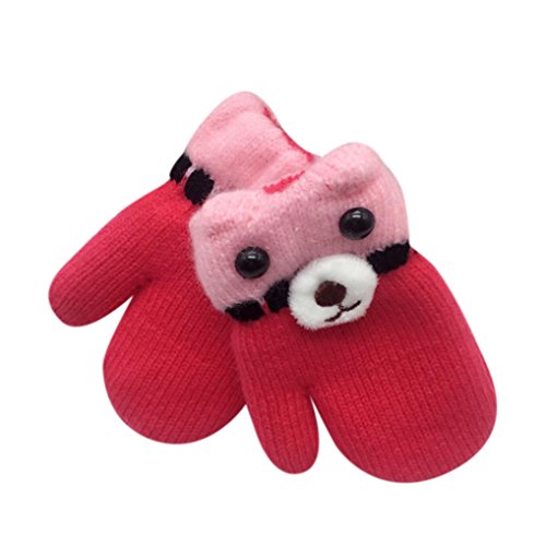 Tonsee キッズ 手袋 子供用 可愛い ニットグローブ 保温 防寒 女の子 男の子 赤ちゃん ミトン 冬用 通学 お出かけ用 (ホットピンク)