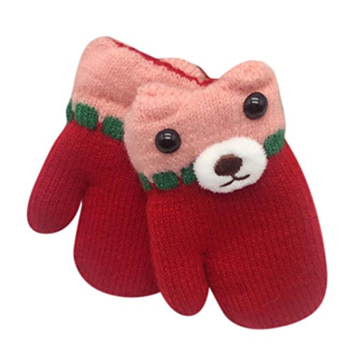 Tonsee キッズ 手袋 子供用 可愛い ニットグローブ 保温 防寒 女の子 男の子 赤ちゃん ミトン 冬用 通学 お出かけ用 (レッド)