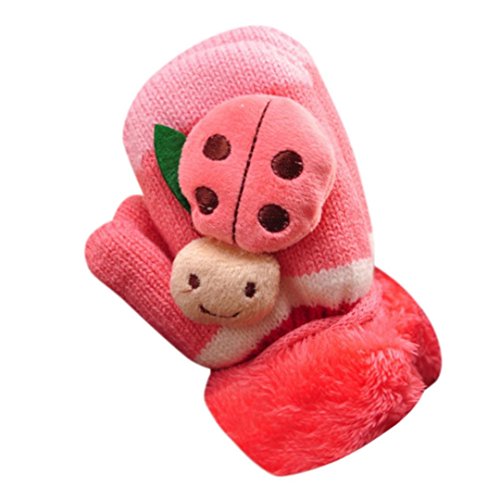 Tonsee 赤ちゃん 手袋 子供用 可愛い ニットグローブ 女の子 男の子 ミトン 防寒 冬用 通園 通学 お出かけ用 1-4歳 (ピンク)