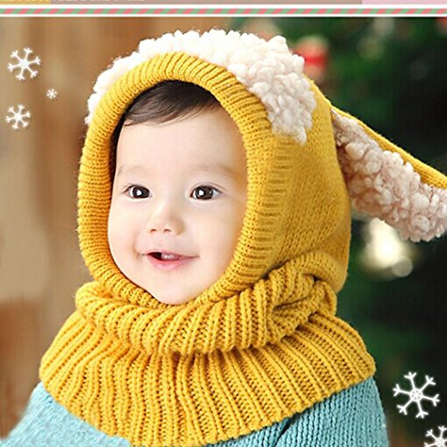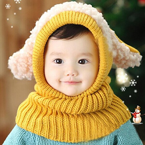 Tonsee 選べる5色 キッズ ニット帽子 ベビー 赤ちゃん 子供用 かわいい 防寒 帽子 (イエロー)