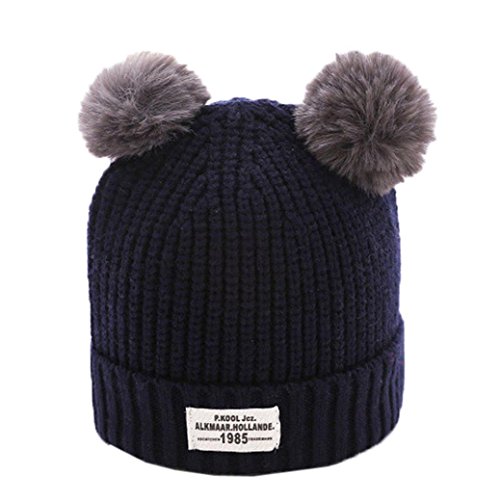 Tonsee キッズ 帽子 ベビー ニットキャップ 冬 暖かい キャップ 女の子 男の子 赤ちゃん 子供用 可愛い ハット 防寒 (ネービー)