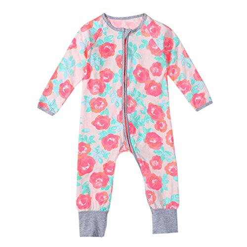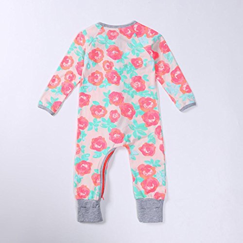 Tonsee ベビー ロンパース 可愛い ジッパー ジャンプスーツ 男の子 女の子 プリント ロンパース お着替え簡単 (70, ピンク)