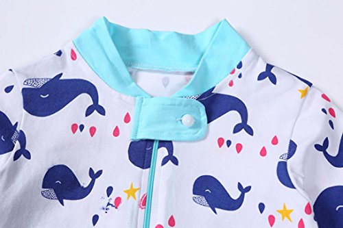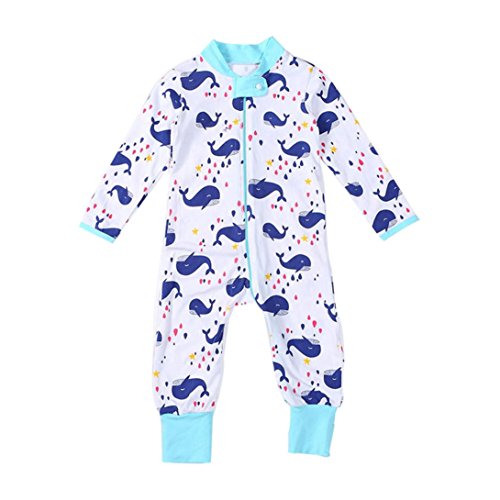 Tonsee ベビー ロンパース 可愛い ジッパー ジャンプスーツ 男の子 女の子 プリント ロンパース お着替え簡単 (70, ライトブルー)