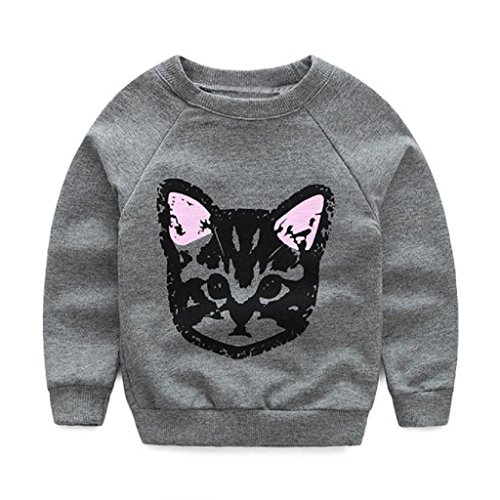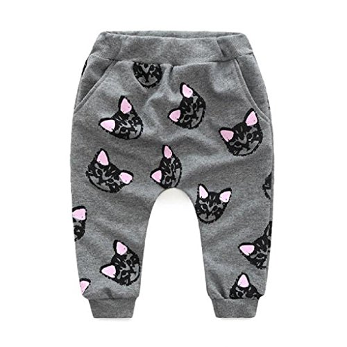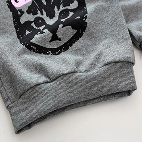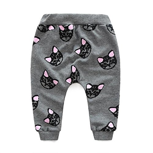 Tonsee ベビー ガールズ服 上下セット 可愛い 猫 プリント 長袖 シャツ+ズボン 2点セット (90)