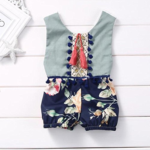 Tonsee ノースリーブ ロンパース キッズ 可愛い ジャンプスーツ 花柄 柔らかい ベビー服 (60)